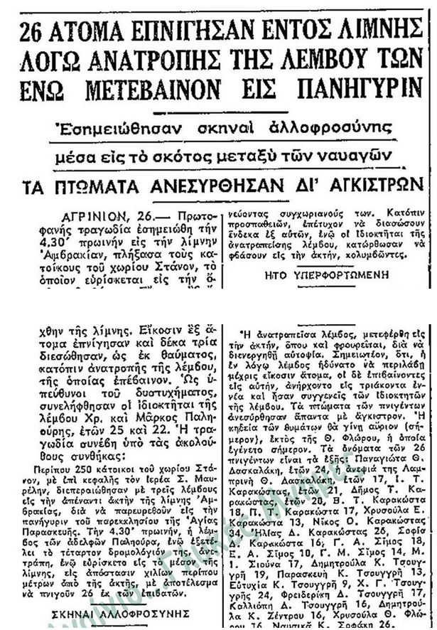 Το τραγικό δυστύχημα στη Λίμνη Αμβρακία πριν από 60 χρόνια στέρησε τη ζωή σε 26 ανθρώπους που πήγαιναν να προσκυνήσουν την Αγία Παρασκευή, μετατρέποντας μια θρησκευτική γιορτή σε εθνική θλίψη.